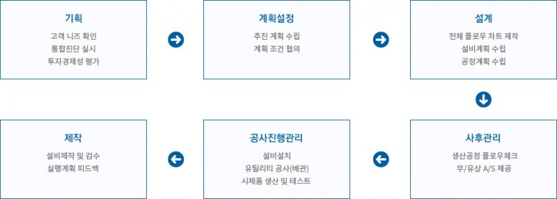 생산환경의 인프라부터 생산설비까지 Total Engineering 솔루션을 제공하는 전문기업으로서